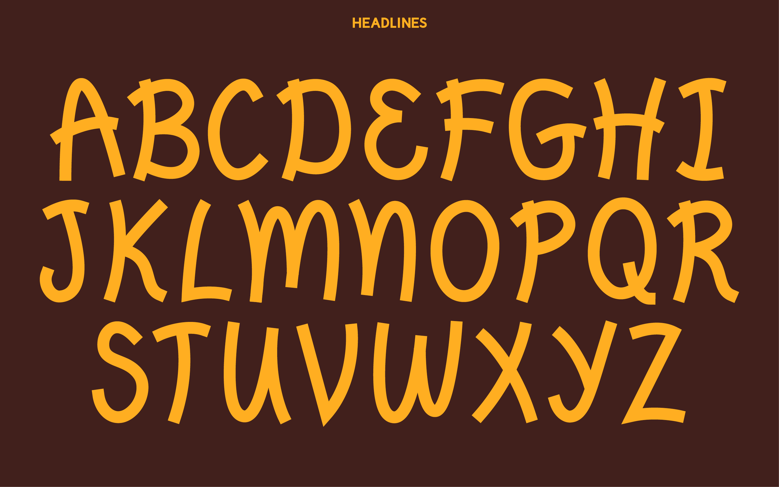 The colour palette is eye-catching but not overly bright. The organic lines and handwritten look of the custom typeface give it a bouncy and playful feel.